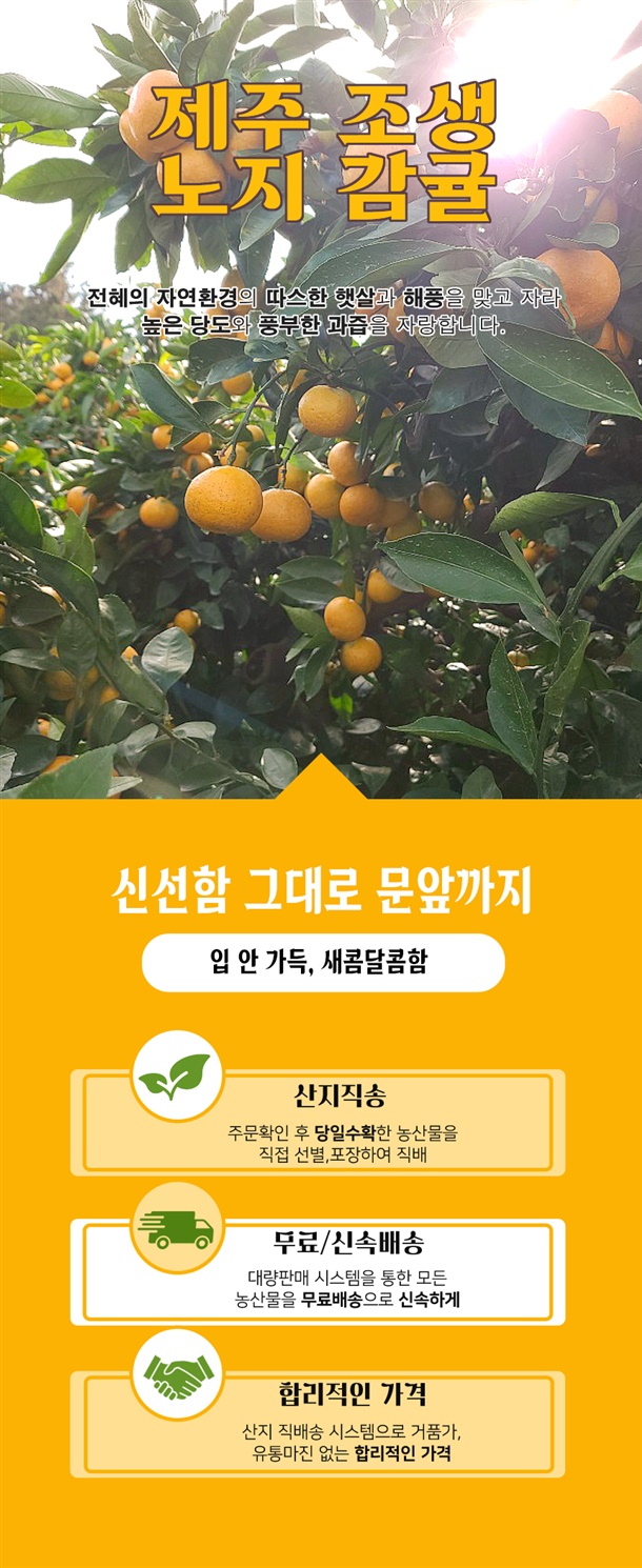 청정 제주 노지에서 자라 더욱 새콤달콤한 극조생 감귤! 지금 바로 산지 직송 무료배송으로 만나보세요.