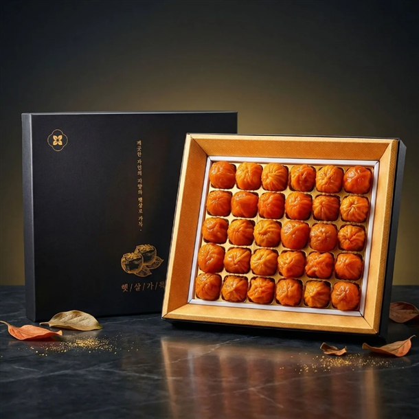4.정성스러운 수제 호두말이: 영동의 특산물인 고소한 국내산 호두를 곶감 안에 꽉 채웠습니다. 달콤함과 고소함의 조화는 영동 반건시 곶감 선물세트만의 품격을 높여줍니다.