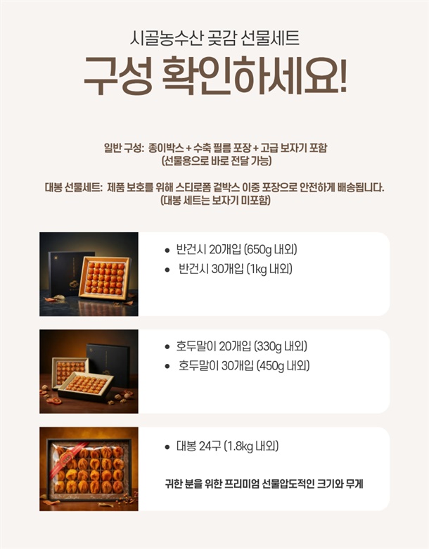 2.대봉 선물세트: 제품 보호를 위해 스티로폼 겉박스 이중 포장으로 안전하게 배송됩니다. (대봉 세트는 보자기 미포함)