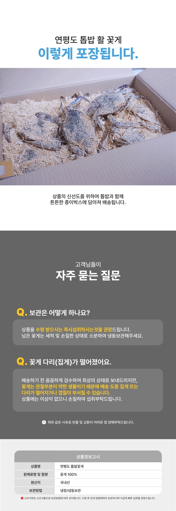 톱밥에 담아 집 앞까지 살아있는 상태 그대로 배송되는 프리미엄 활꽃게입니다.
